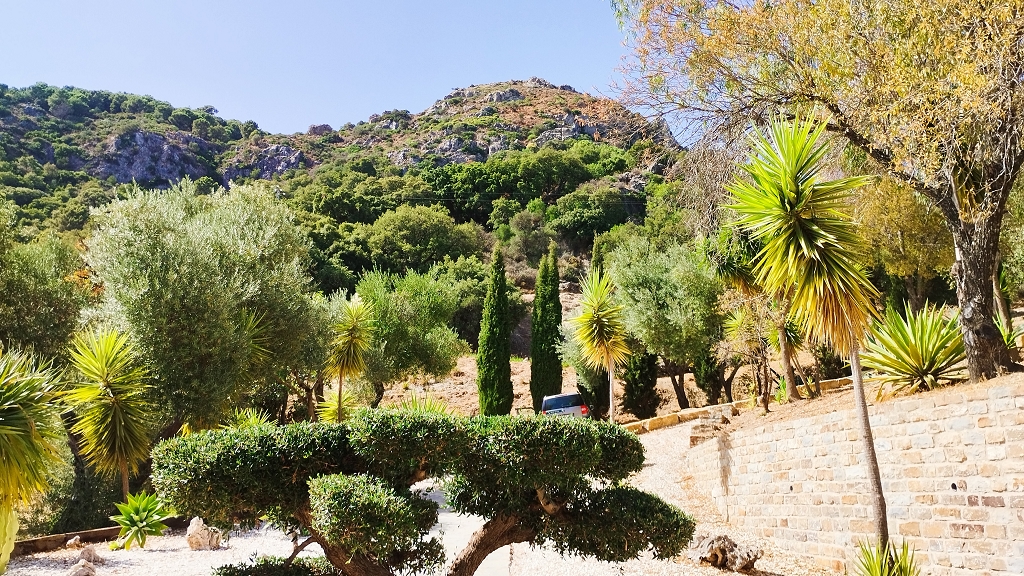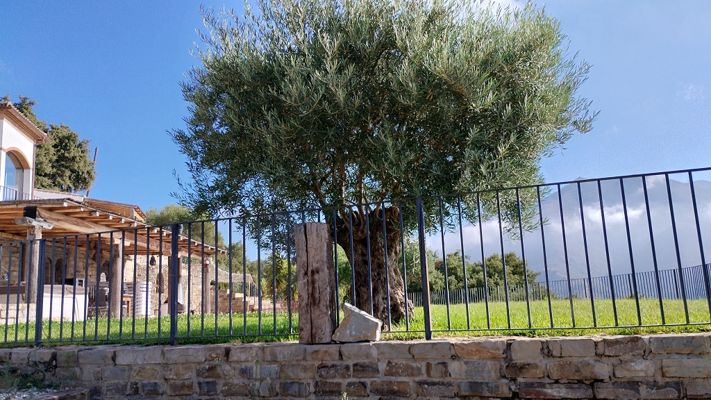 Aber gut mittlerweile stand ich vor einer großen Einfahrt und Google erzählte mir stolz das Ziel sei auf der linken Seite von mir, na klasse ich hatte es überlebt, sah aber nur ein großes mit Oliven und anderen Bäumen bewachsenes offenes Gelände und kaum etwas von einem Haus.