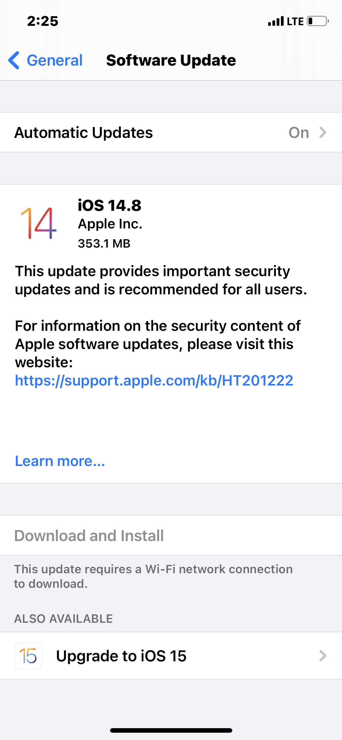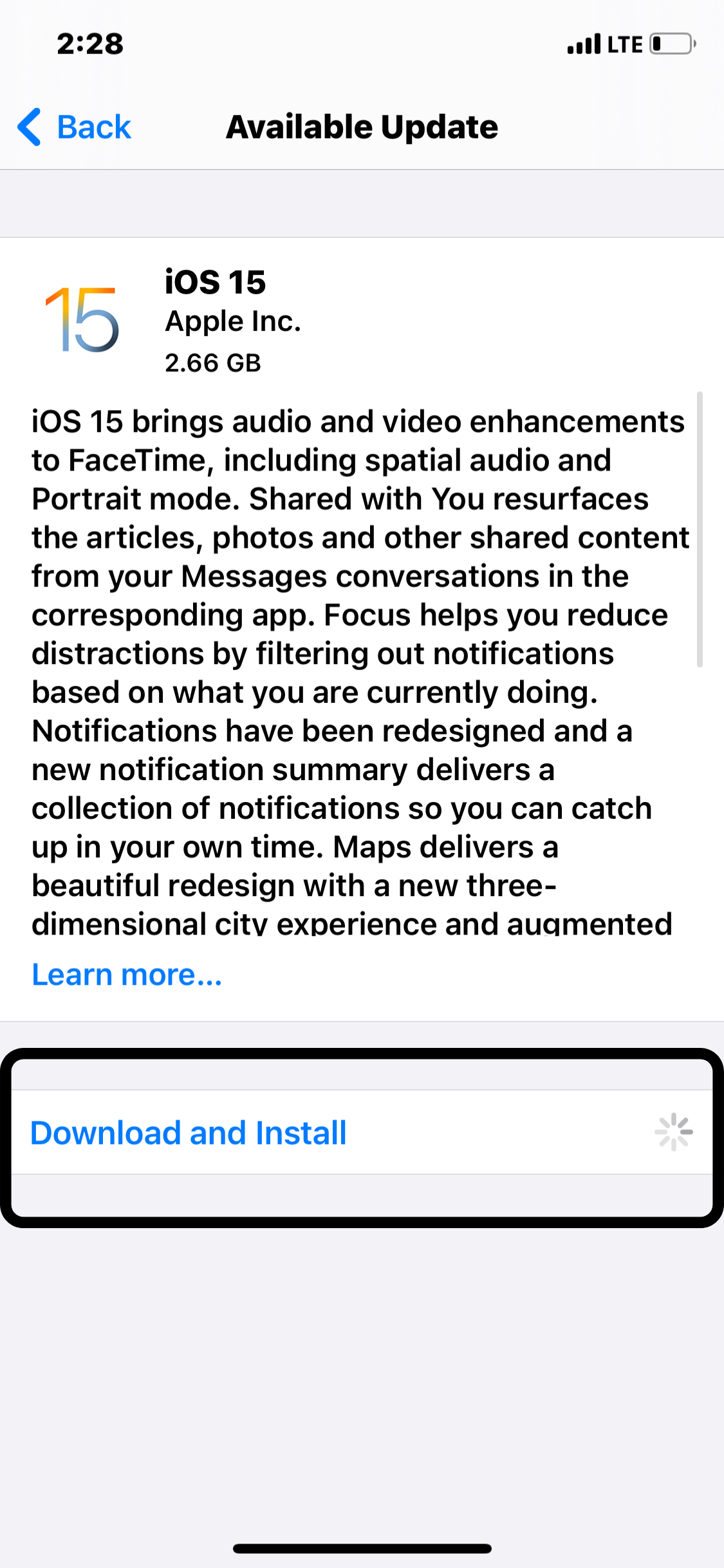 - You will see that the “Download and Install” that was initially not highlighted will now be highlighted.