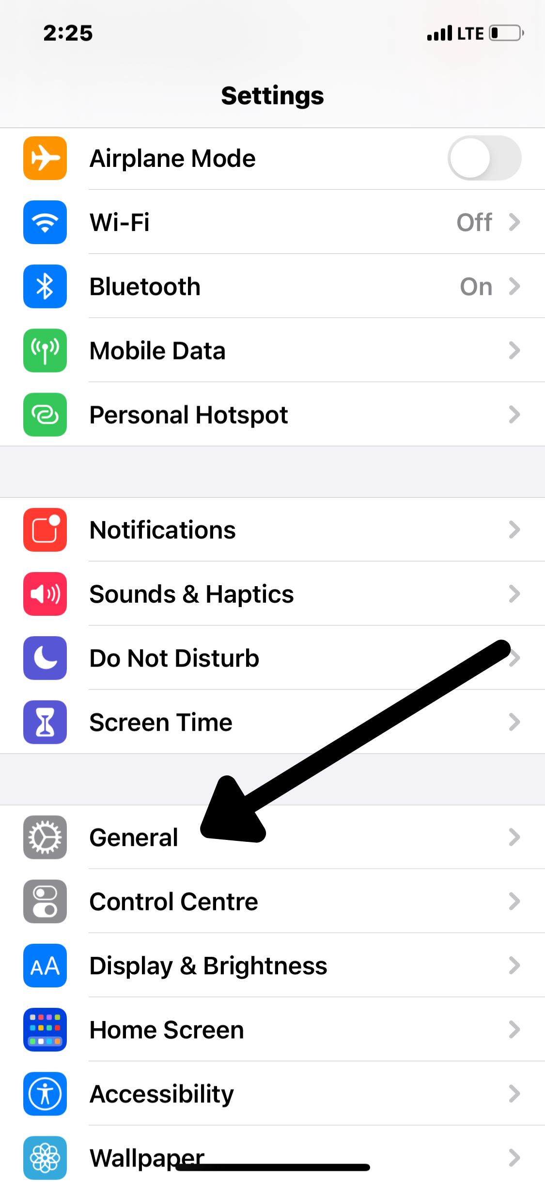 - You then scroll down till you see “General” then you tap on it.