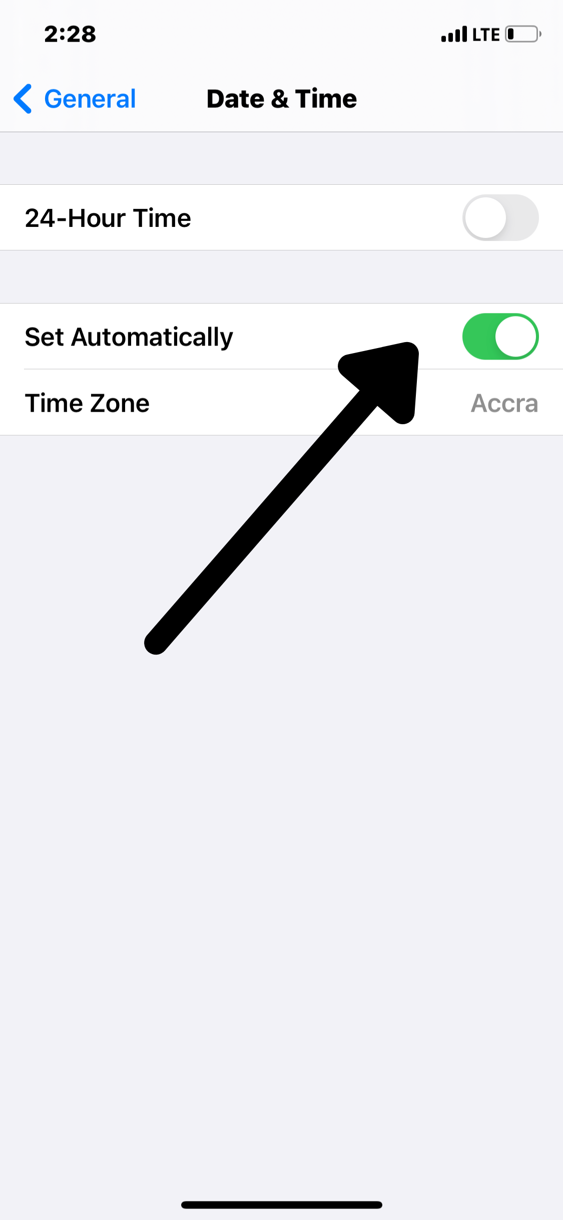 - Go back and set the date to automatic