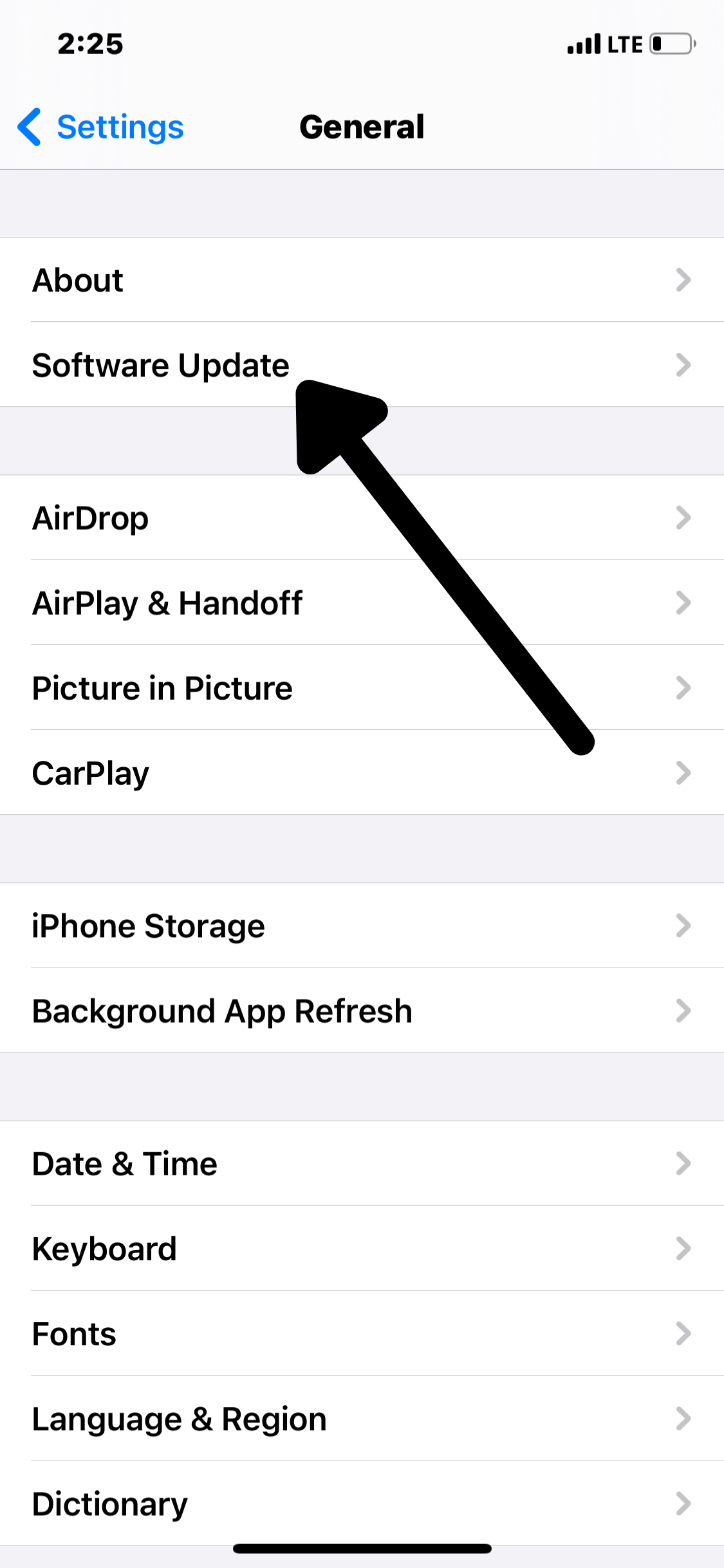 - After choosing “General” you then choose “Software Update”.