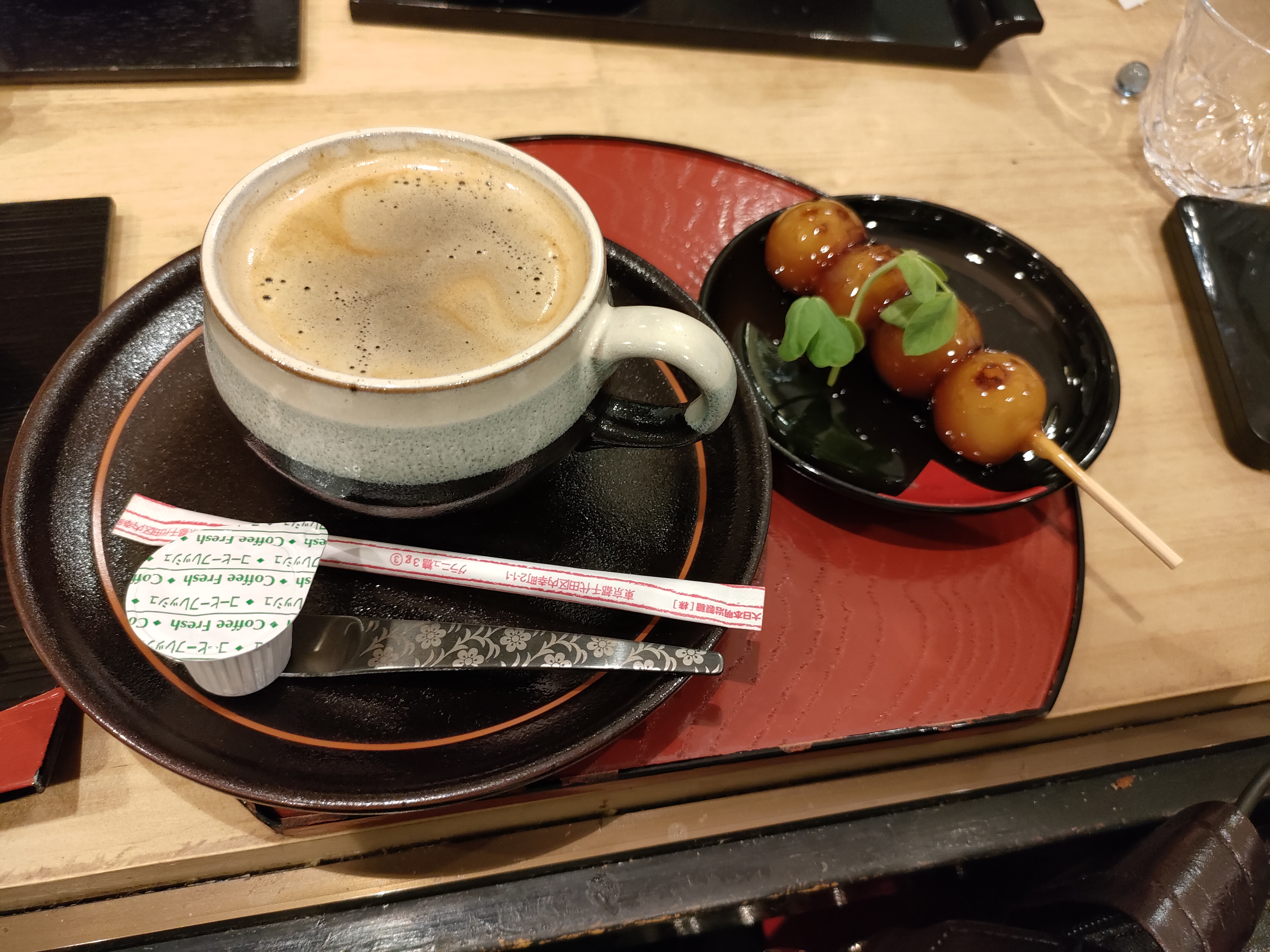 こんな感じで珈琲にはお団子が付くし、ぜんざいはなみなみと注がれるし、おもちもたっぷり(笑)
