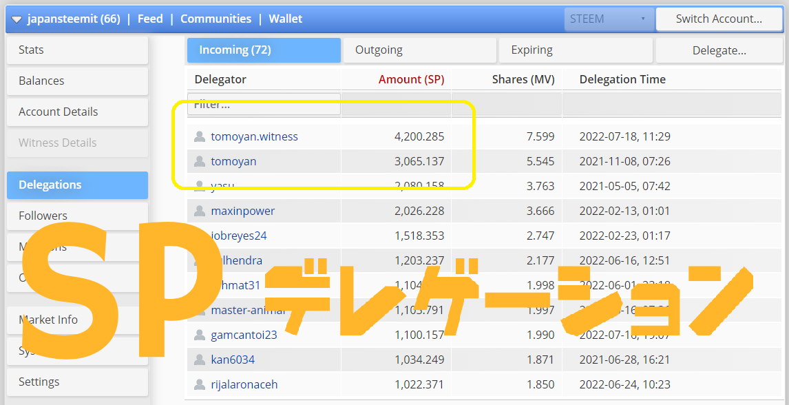 今日また日本語コミュニティーアカウントのSPデレゲーションを増やしました!