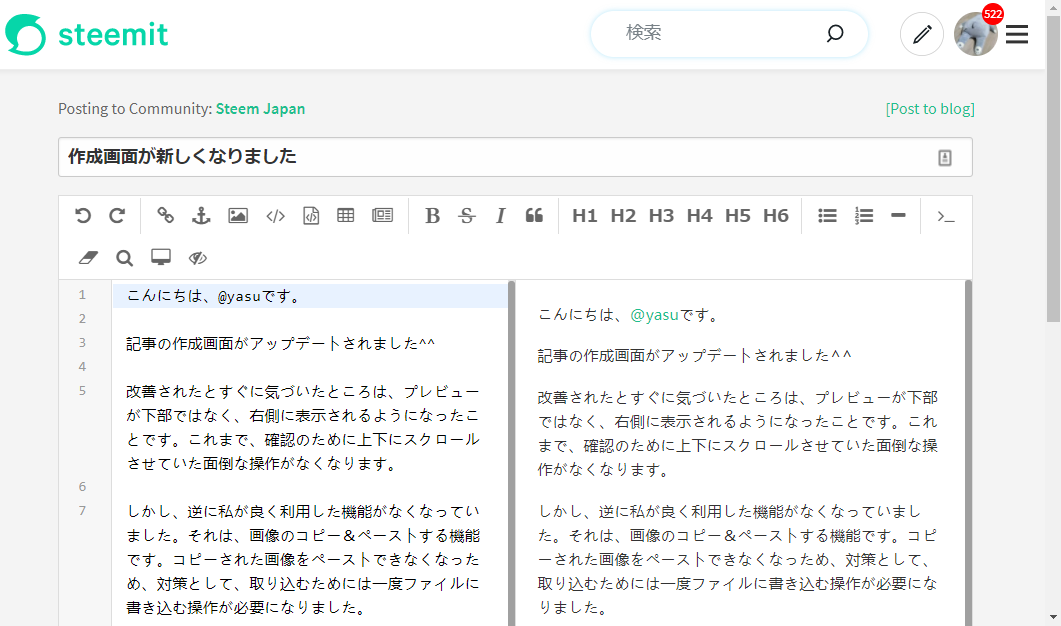 機能追加のお知らせのようなものがないので、使ってみて初めて気づくことが多いです。それでも、Steemitの発展に尽力されていることに、感謝しています。