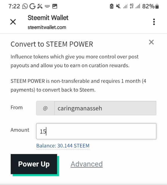 My process of powering up 15 steem