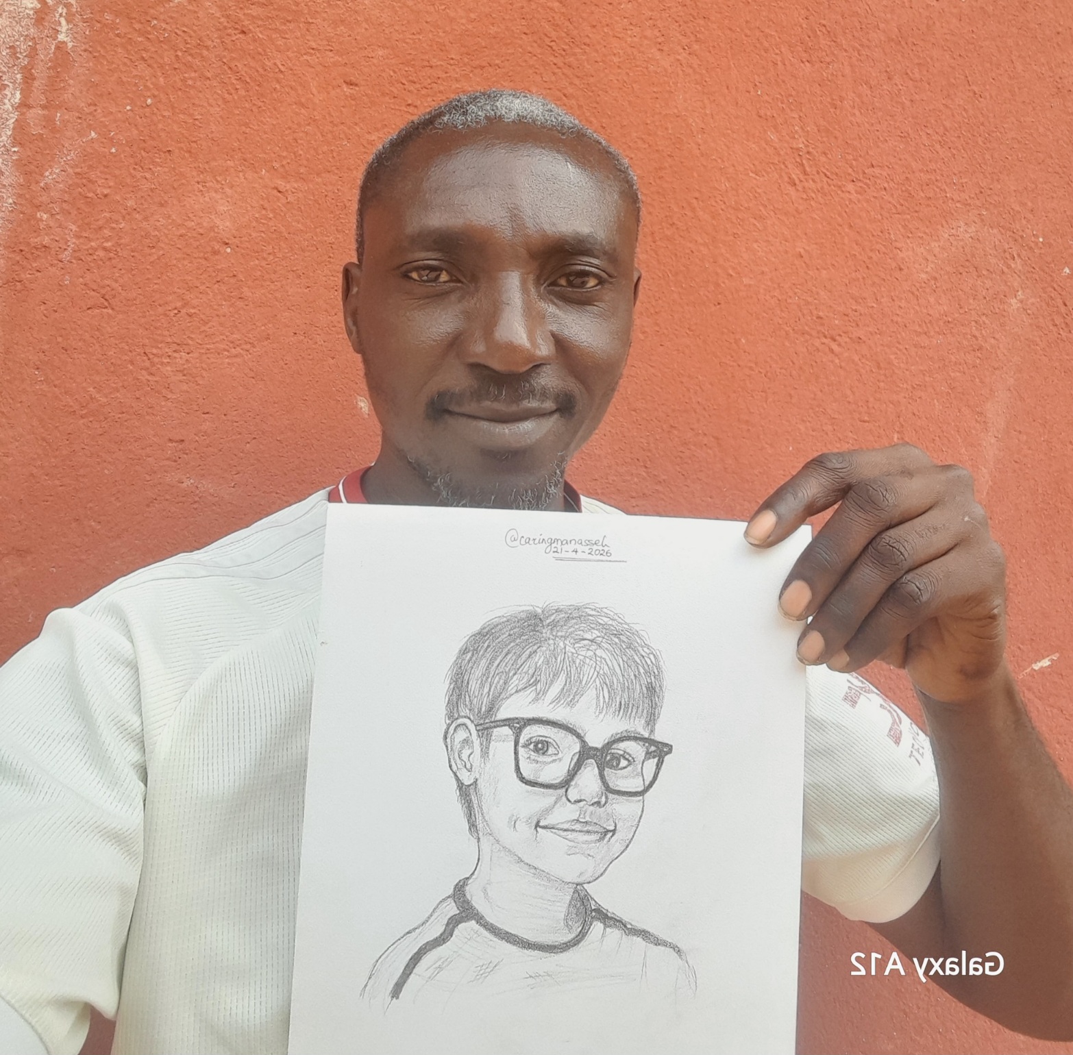 At this last step of my drawing, I shaded the T-shirt he wore using a 10B and 2B pencil. I also added shading to the ear and the hair on his head.