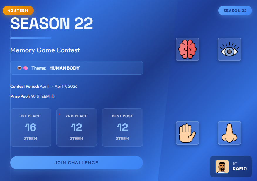 Welcome to Season 22 of the Steem Memory Game Contest This season, we're exploring the fascinating world of the Human Body – celebrating the incredible parts and systems that make us who we are!