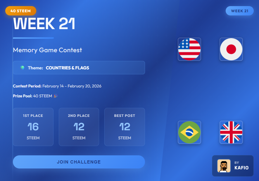 https://steemit.com/steem-kids-parents/@zory23/concurso-de-memoria-steem-de-la-semana-21-or-tema-el-vibrante-mundo-de-paises-y-banderas