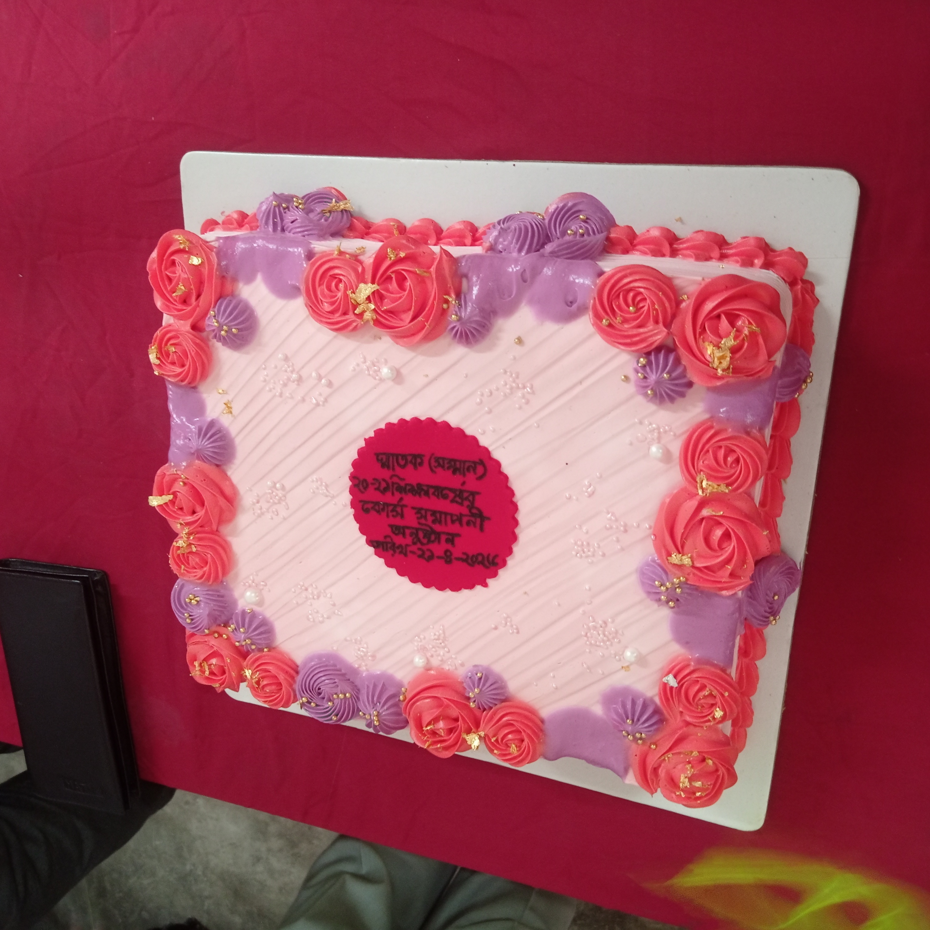 From the Bangla department for us. Lunch was served with small gifts. And we all cut a very beautiful cake at the farewell party. The cake was very good, everyone was very happy. After that, we all took a group picture. I also took several pictures with my girlfriend because these will be saved on the right page.