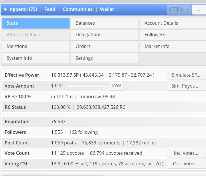 Step 2: go to stat which is usually the default section that appears once your steemworld page opens. See mine below 👇👇
