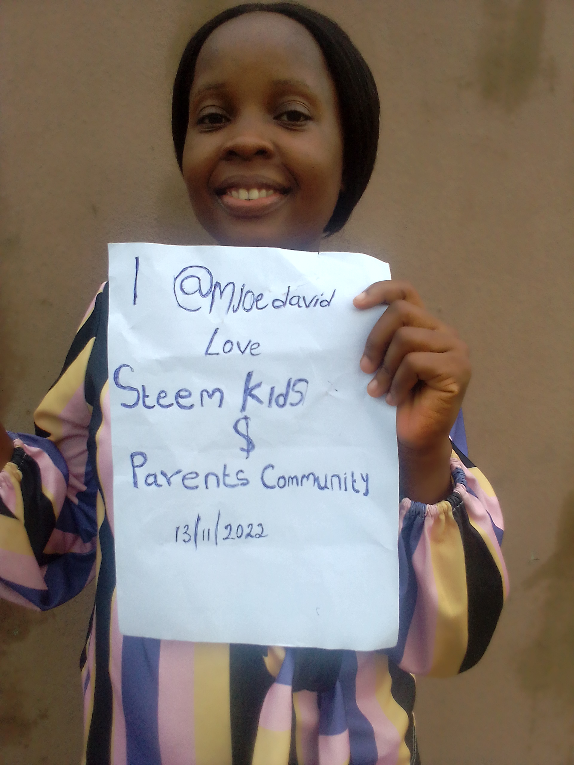 After you must have met the requirements above, come to the comment section of this post, upload a photo of you holding a paper with a current date, your username, I love steem kids & parents community boldly written on the paper