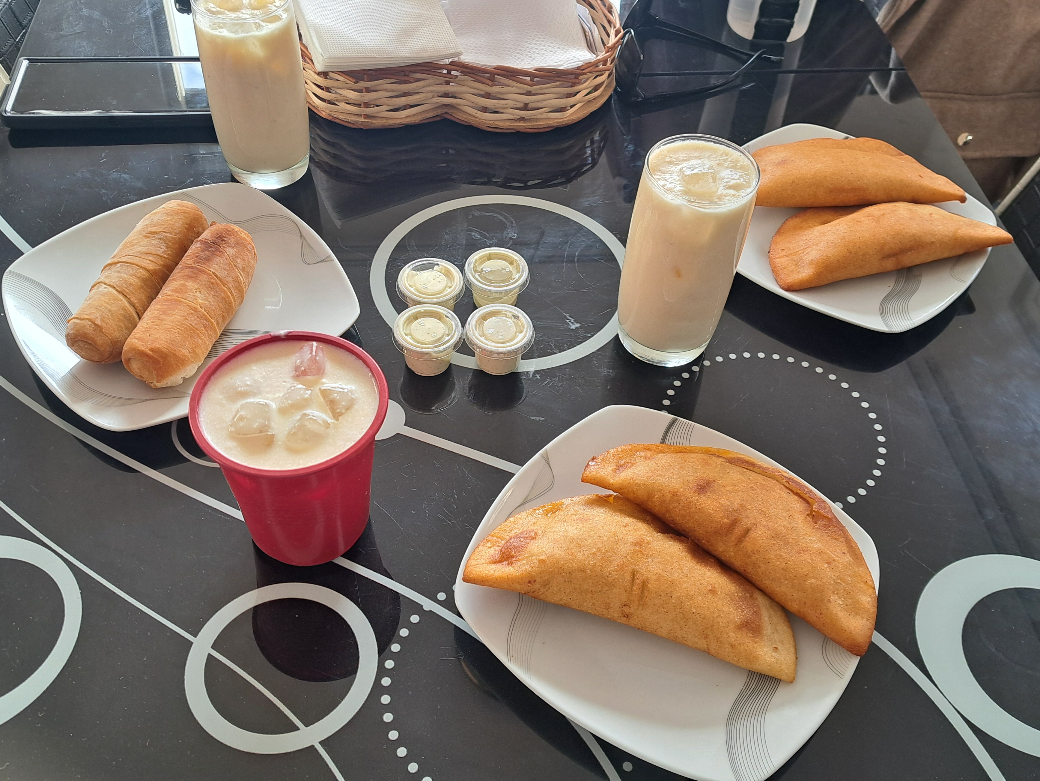 Para nuestro desayuno del día viernes mi hijo decidió apoyar a unos muchachos venezolanos que tiene un emprendimiento cerca de la casa 🏡, ellos venden unas empanadas muy deliciosas de carne mechada, pollo, jamón y queso, también hacen tequeyoyos, para acompañar este increíble desayuno venezolano hicimos un jugo de guanábana con leche, todo estuvo muy exquisito y lleno de sabor, la gloria sea para Dios por sus bendiciones y sus provisiones.