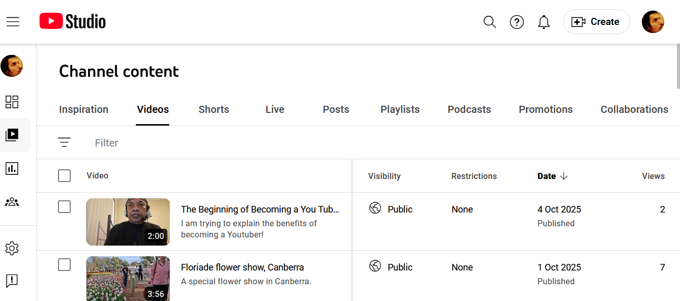 Finally I went to the YouTube Studio
