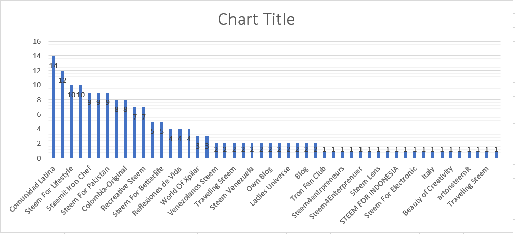 Our team has curated 50 communities, including the Blog. The first-place community is Comunidad Latina Steem Kids & Parents, the second-place community is Steem Kids & Parents, and the third-place community is Steem For Lifestyle Community.