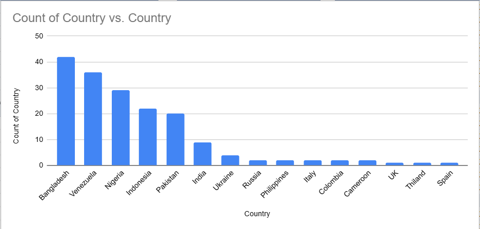 We have targeted 15 countries in our first week, with Bangladesh in first place, Venezuela in second, and Nigeria in third, where the most curation has occurred. These are very active countries.