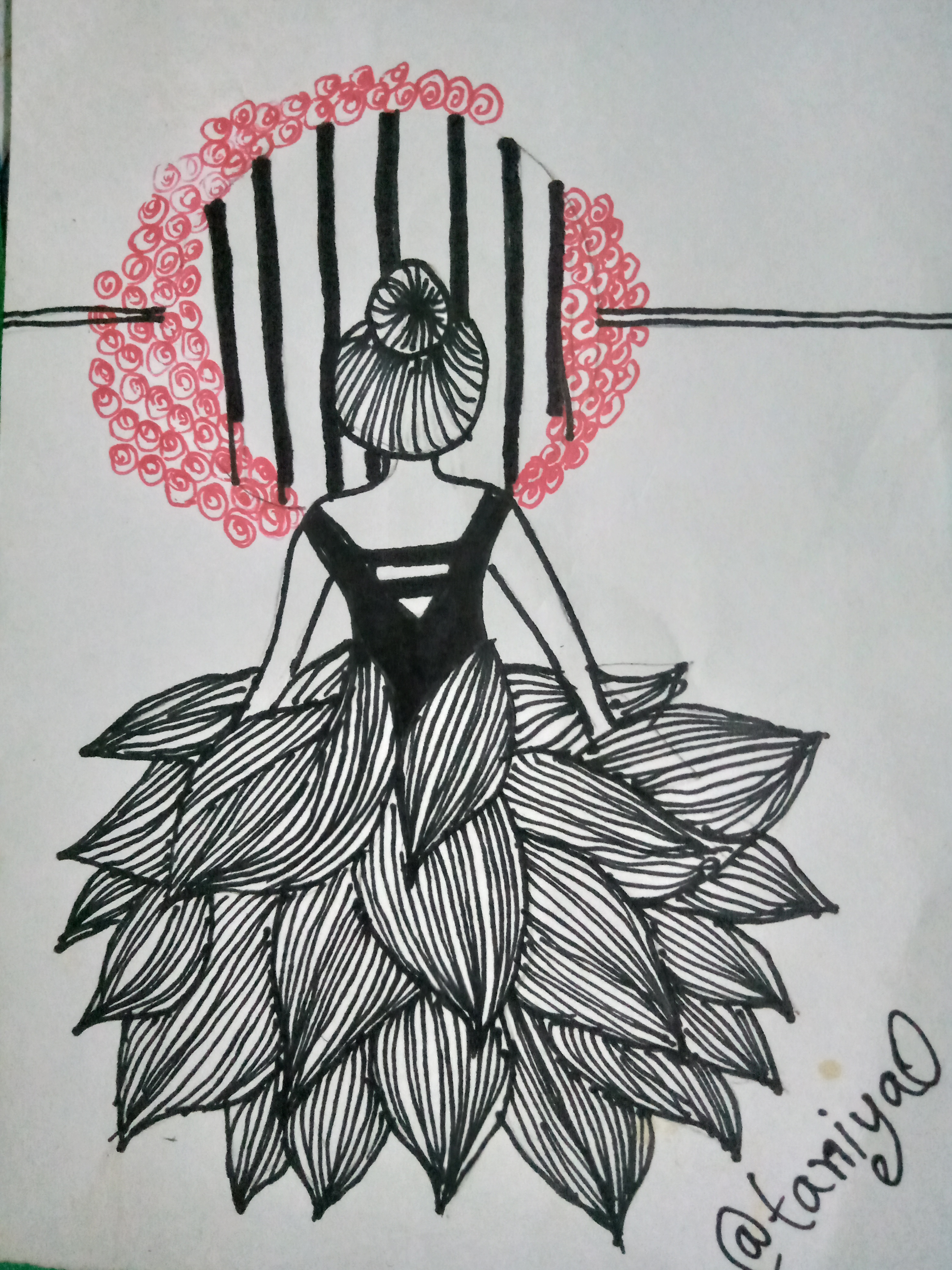 ![]() | @taniya0 | Today I will share with you a drawing of a girl wearing a patterned gown |