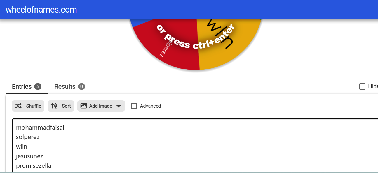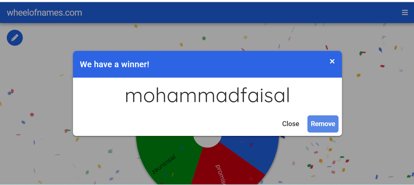 Second Spin (I removed the name of fifth winner @mohammadfaisal