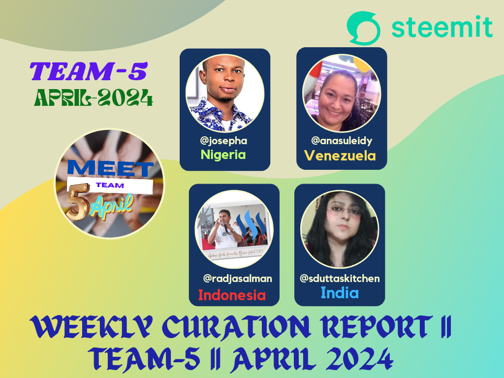 Dear Steemit and @everyone on this great platform, Steemit. On behalf of the Team 5 community curators, I am happy to share with you our report for the past week. This is our second report for April, which covers our activities from April 8, 2024, to April 14, 2024.