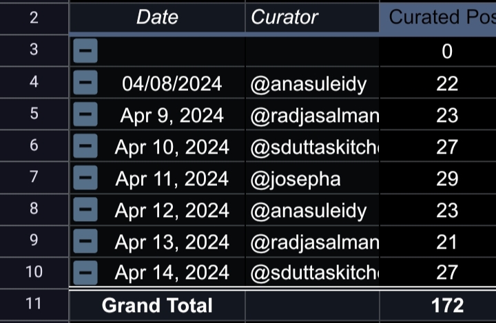 For the past week, between April 8, to April 14, 2024, we curated a total of 172 posts across the Steemit platform. We also curated and supported well-meaning comments, and we managed to curate 16 comments.
