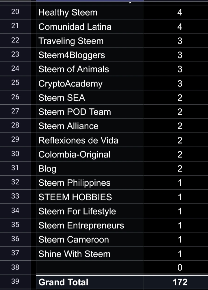 Our team supported posts with different hashtags that are dominated by the hashtags #steemexclusive, #thediarygame, #challenge, #contest, #creativewriting, etc. These tags get the highest number of upvotes.