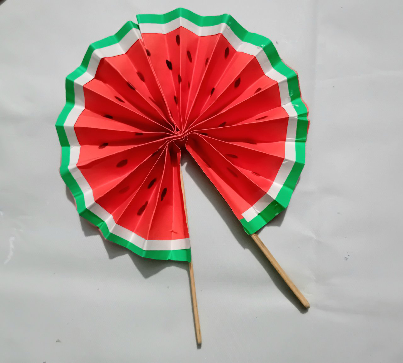 Reason: The user @sanuu has shared with us an interesting publication full of dedication... she has created a very flirty craft of a watermelon fan, a craft full of small details and very original. The user has made good use of the commands, the photographs used are appropriate and the step-by-step is well-detailed and very easy to follow, this is good content that promotes creativity, craftsmanship, and originality.