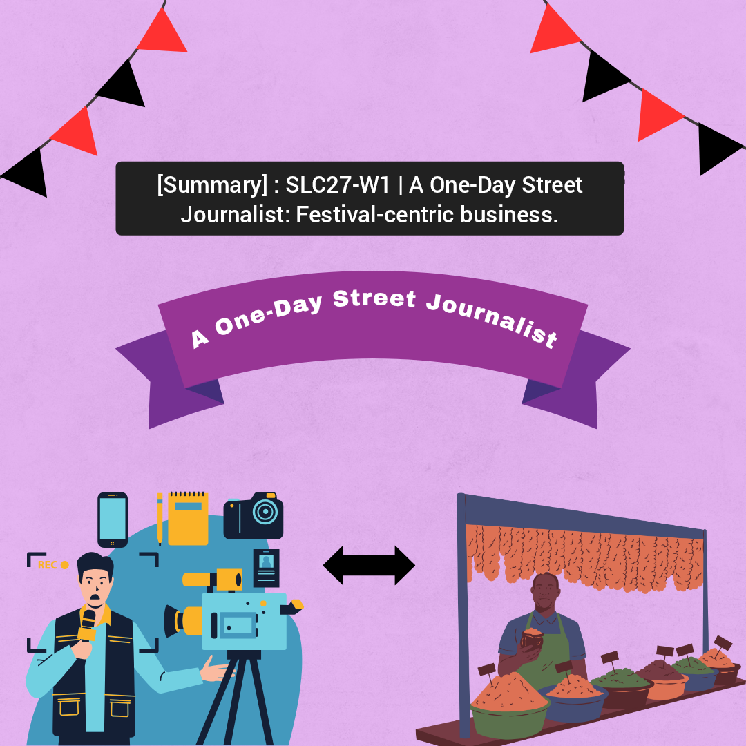 [Summary] : SLC27-W1 | A One-Day Street Journalist: Festival-centric business.