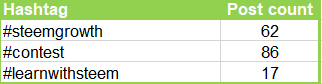 | #steemgrowth | There were no lack of support for this tag during the first week. |