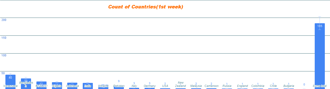 This week, our team conducted coverage across 18 countries. Venezuela attained the highest level of support, featuring a total of 40 posts. Bangladesh ranked second with 30 posts, while Nigeria secured third place with 19 posts.