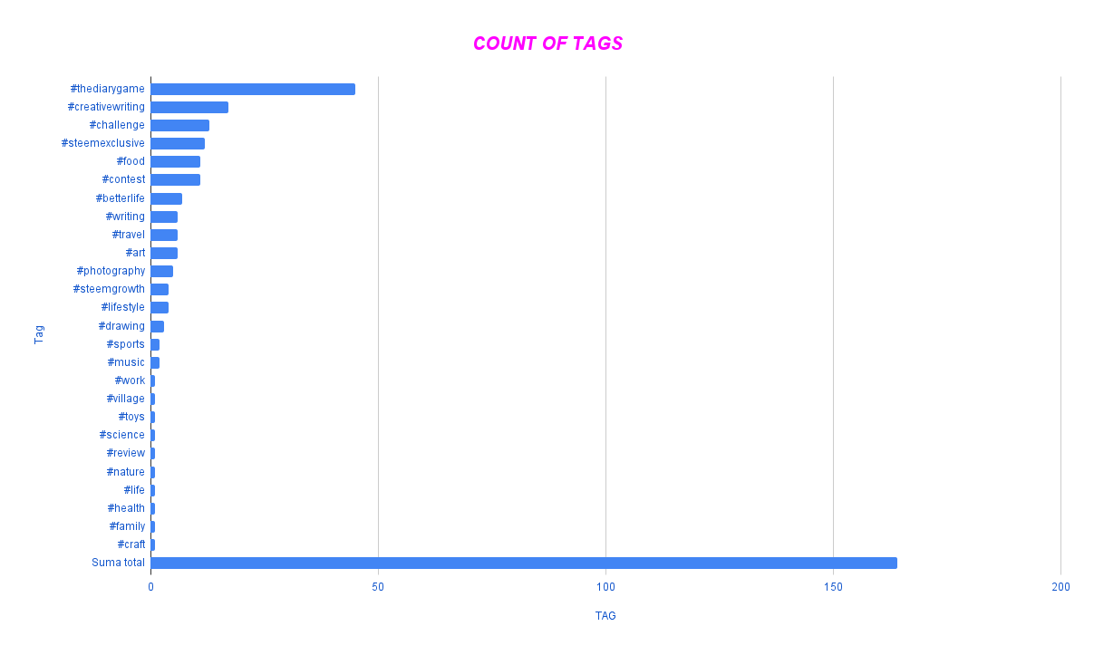 The diary game posts primarily receive the highest level of support, totalling 45 posts. In second place, the contributions of distinct creative writing posts from steemian friends account for 17 posts.