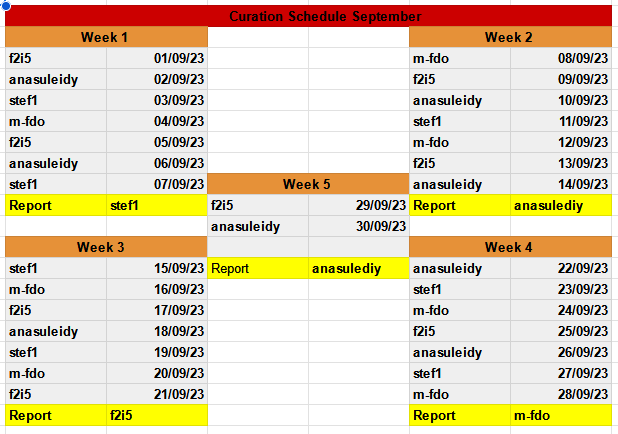 *Today I would like to present you the First Curation report for September week#1 from 01-07/09/23 of our Team. This week we had more work around organisational structure of team and our votes, but everything is going well and we are happy to be able to get on the track *