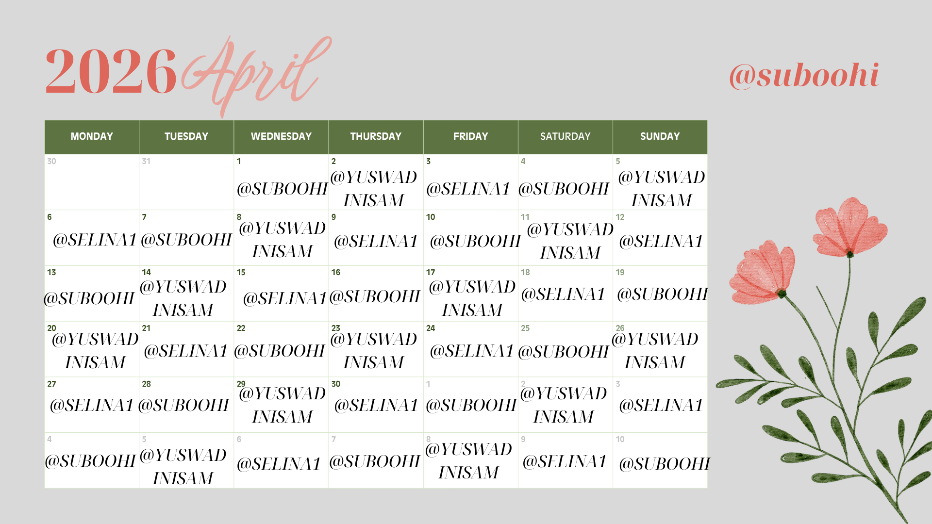 Our team will work on this schedule I'm sharing here curation scheduled for April