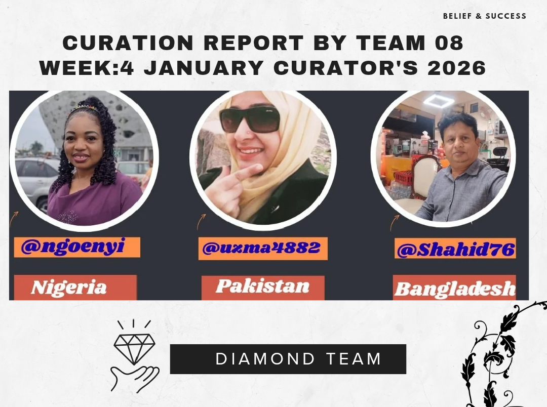 I hope everyone will be fine here. By the grace of Almighty's Allah, We are also good and delightful to share with you the first weekly report Team⁸ [week⁴] January 2026 on the behalf of my cooperative and well organized team. It was mine Third experienced and going to share report of curation with you all. It was great learning and experience worked with my Team 8 . I would like to appreciate their cooperation to complete our Week⁴.