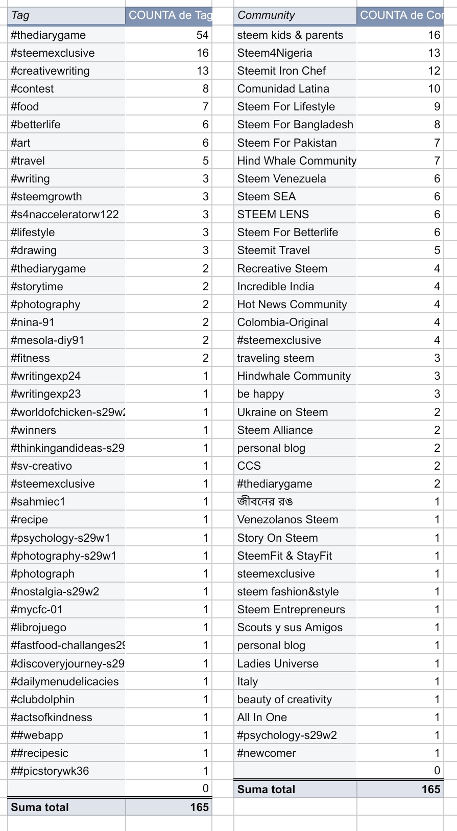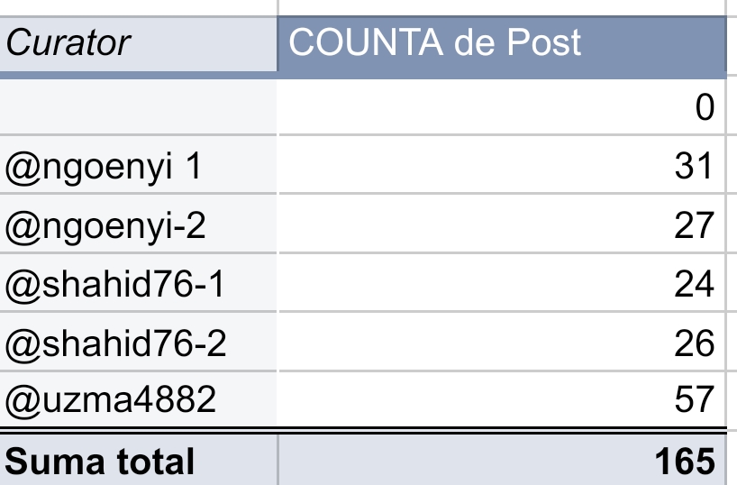 Here is you can see that The screenshot of google sheet given above shows you our Curator's workout. As a team, we have covered 165 Upvotes overall by deep analysis of their sharing quality contents. Each of whose posts were distinct and well presented.