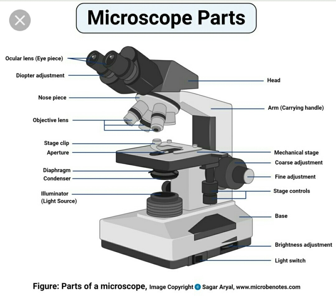 A light microscope has two set of glass lenses: the objective lenses and the eyepiece lenses. Most microscope have two or three objective attached to a rotating nose piece. These lenses usually are 5x,10x, 20x, 40x, and 100x. (A 10x lens magnifies the image of the objective lens. Its magnification ranges from 5x to 15x.https://www.ncbi.nlm.nih.gov/books/NBK26880/