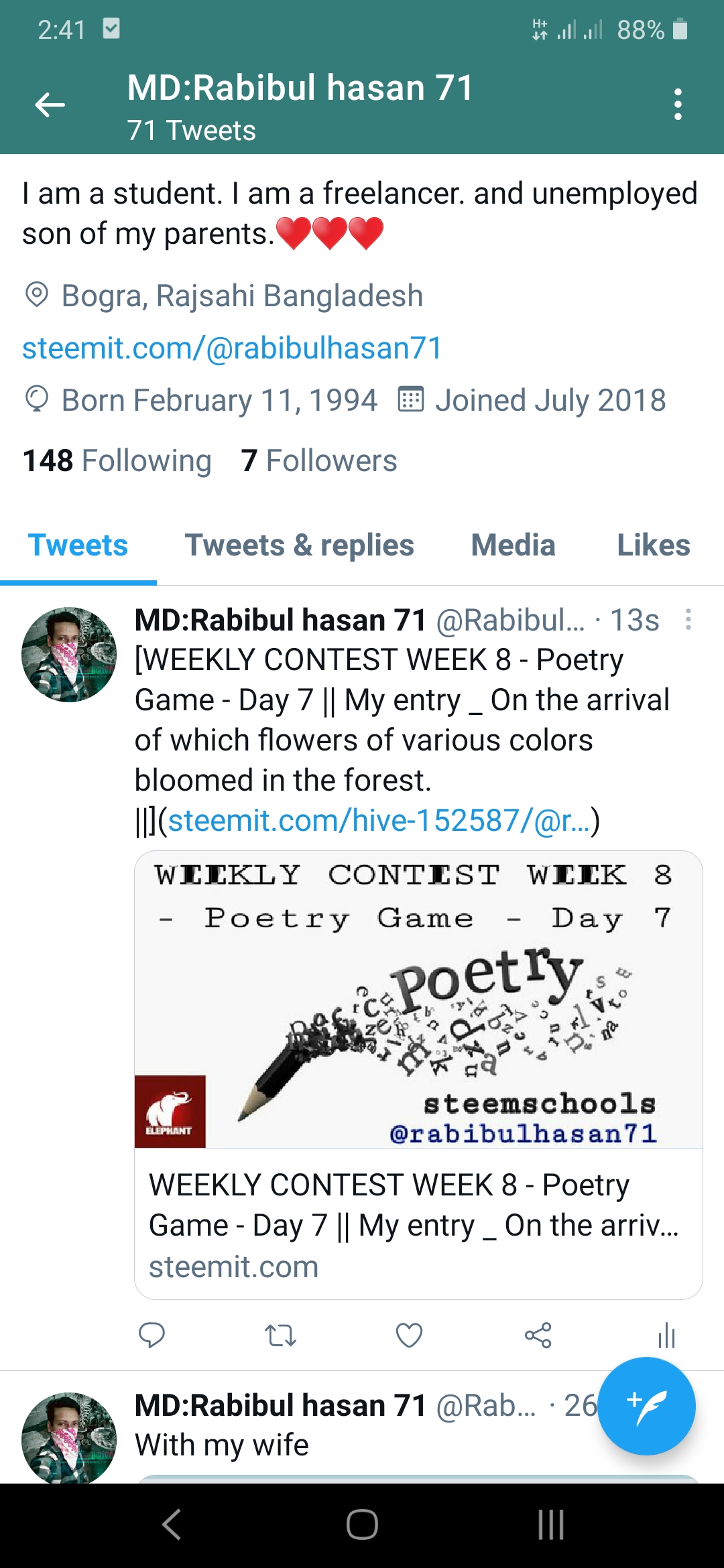 https://steemit.com/hive-152587/@rabibulhasan71/weekly-contest-week-8-poetry-game-day-7-or-or-my-entry--on-the-arrival-of-which-flowers-of-various-colors-bloomed-in-the-forest