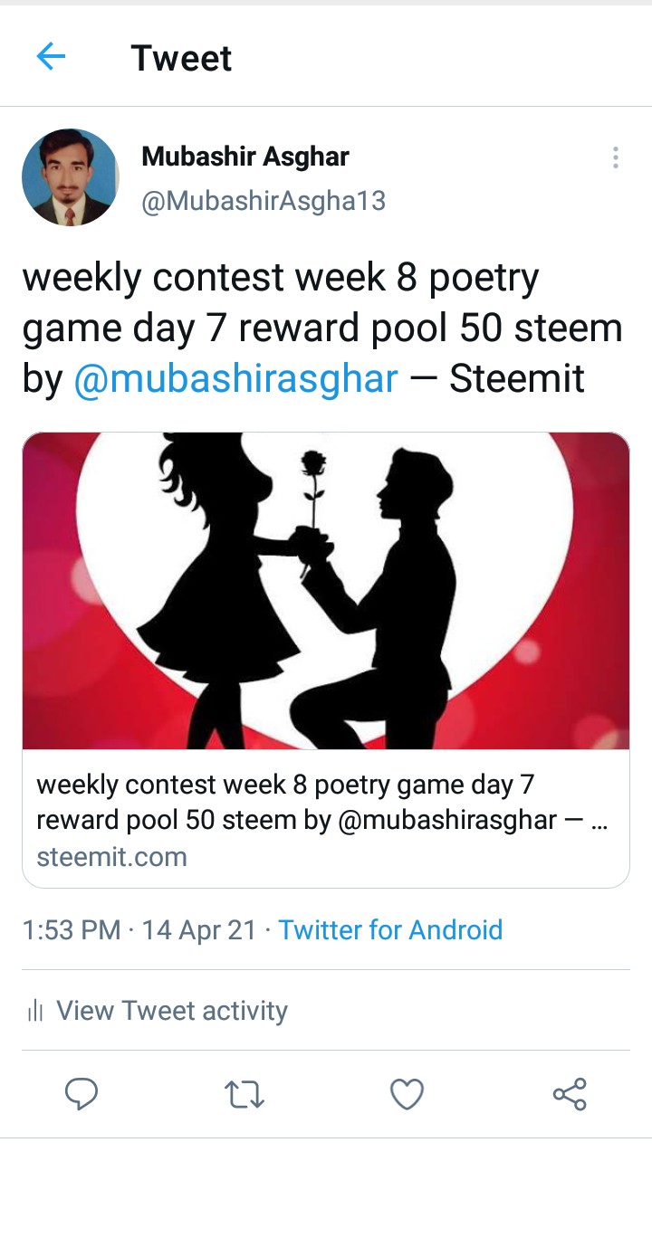 weekly contest week 8 poetry game day 7 reward pool 50 steem by @mubashirasghar — Steemit https://t.co/yhvfJzgVLP