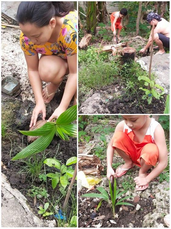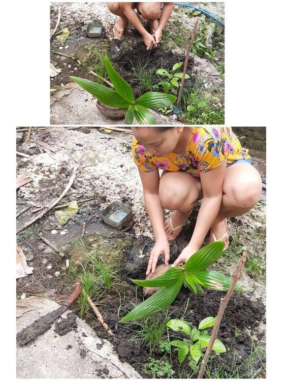 Last Sunday, my husband took some coconut fruits with leaves from our only coconut tree. Since we had to attend a very special event in our chapel, we just soak the coconuts into the water, since last Monday I reported to school and there was also a very heavy rain that lasted yesterday, we then decided to plant the coconuts this afternoon.