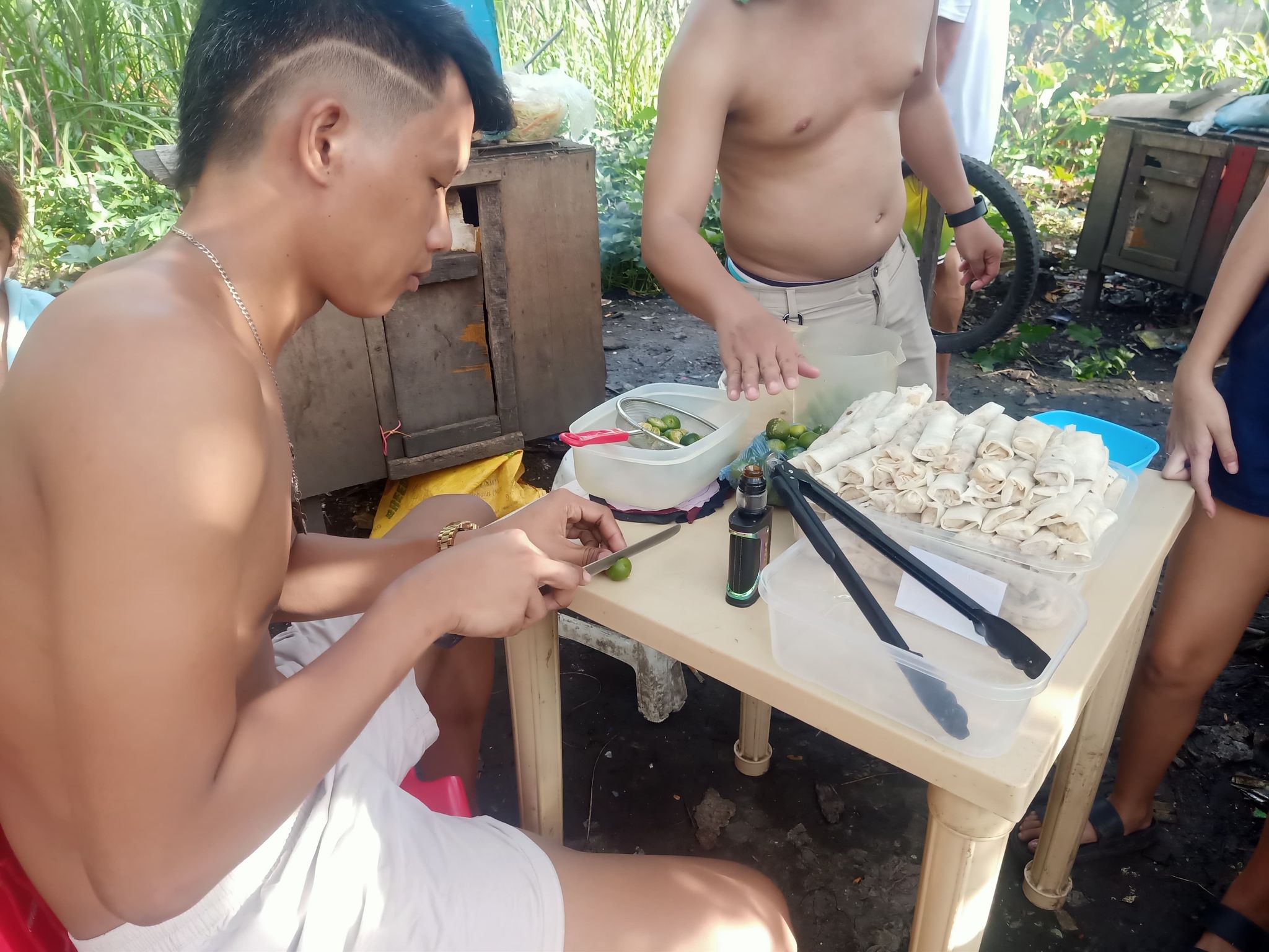 While I was so busy cooking for the lumpia, my friends @jassennessaj, @belsoronz, and Dexter (not yet Steemian), were also busy preparing for the vegetable lumpia.