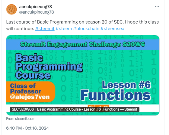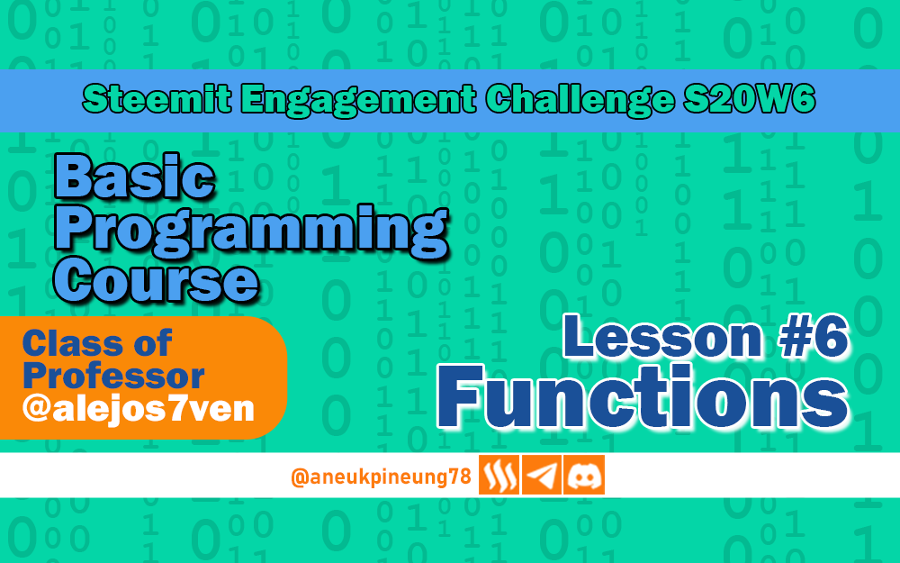 This is my homework post for Steemit Engagement Challenge Season 20 Week 6 assignment of Professor @alejos7ven’s class, Lesson #6 Functions.