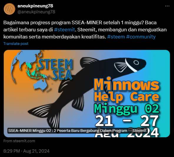 - SSEA-MINER : Program Terbaru Steem SEA Untuk Mendukung Minnows – 7/8/2024;