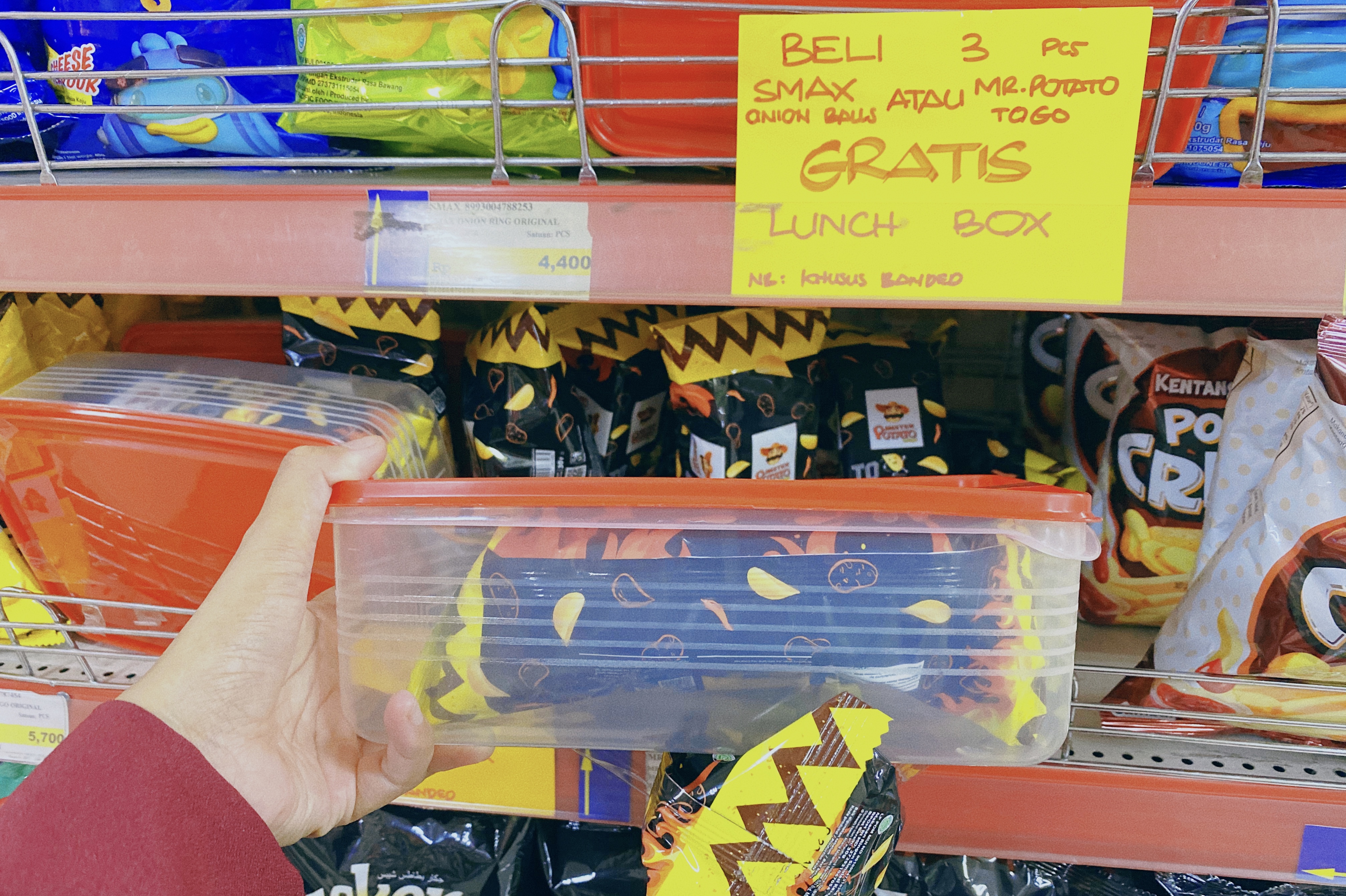 Selain ada produk beli satu gratis satu, ada juga program membeli beberapa produk gratis wadah makanan.
