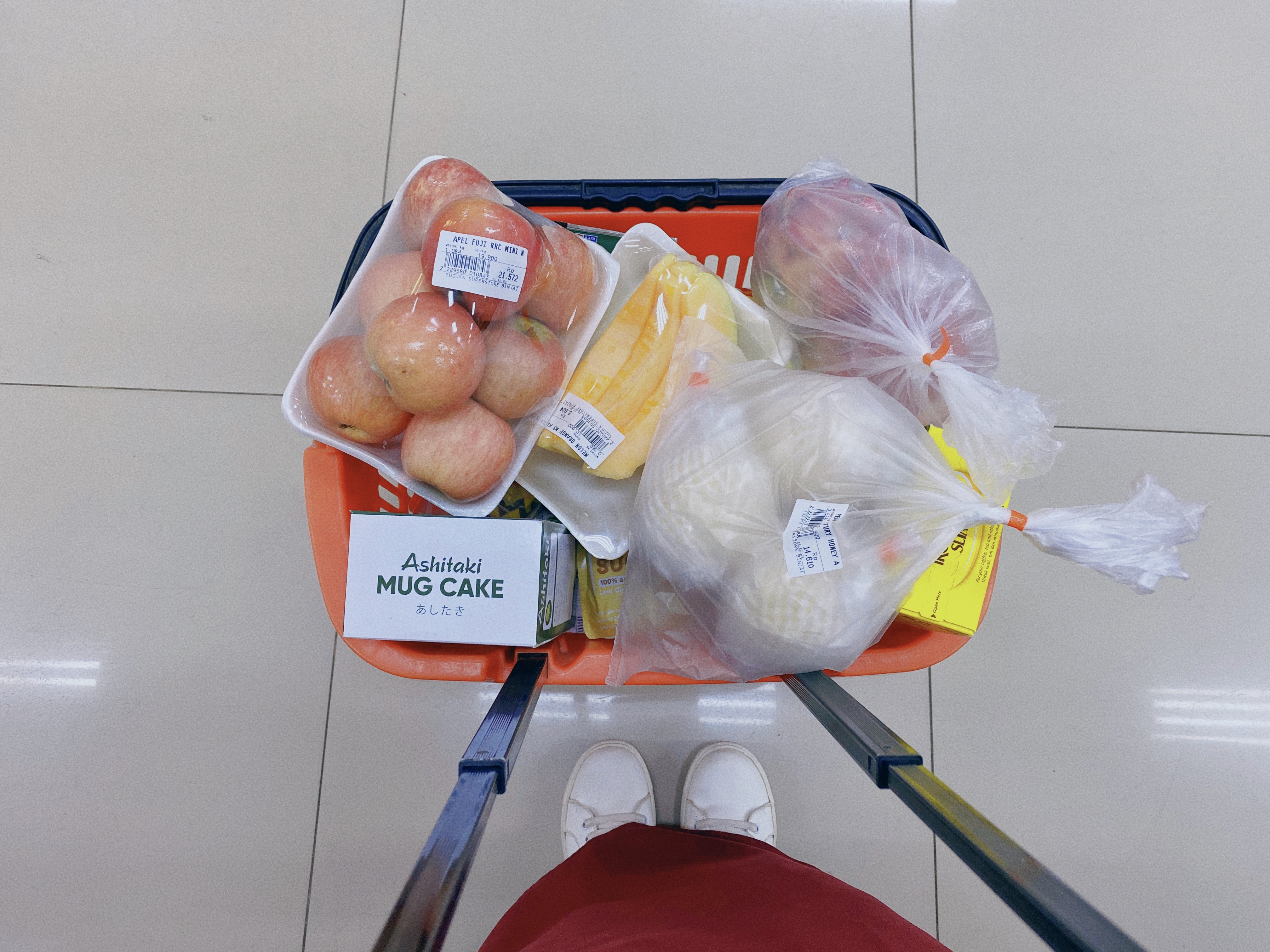 Sebenarnya ada satu keranjang penuh lagi, tapi tidak ikut difoto ehehe. Maklumlah ini belanjaan untuk satu bulanan dan saya tidak keluar rumah lagi.