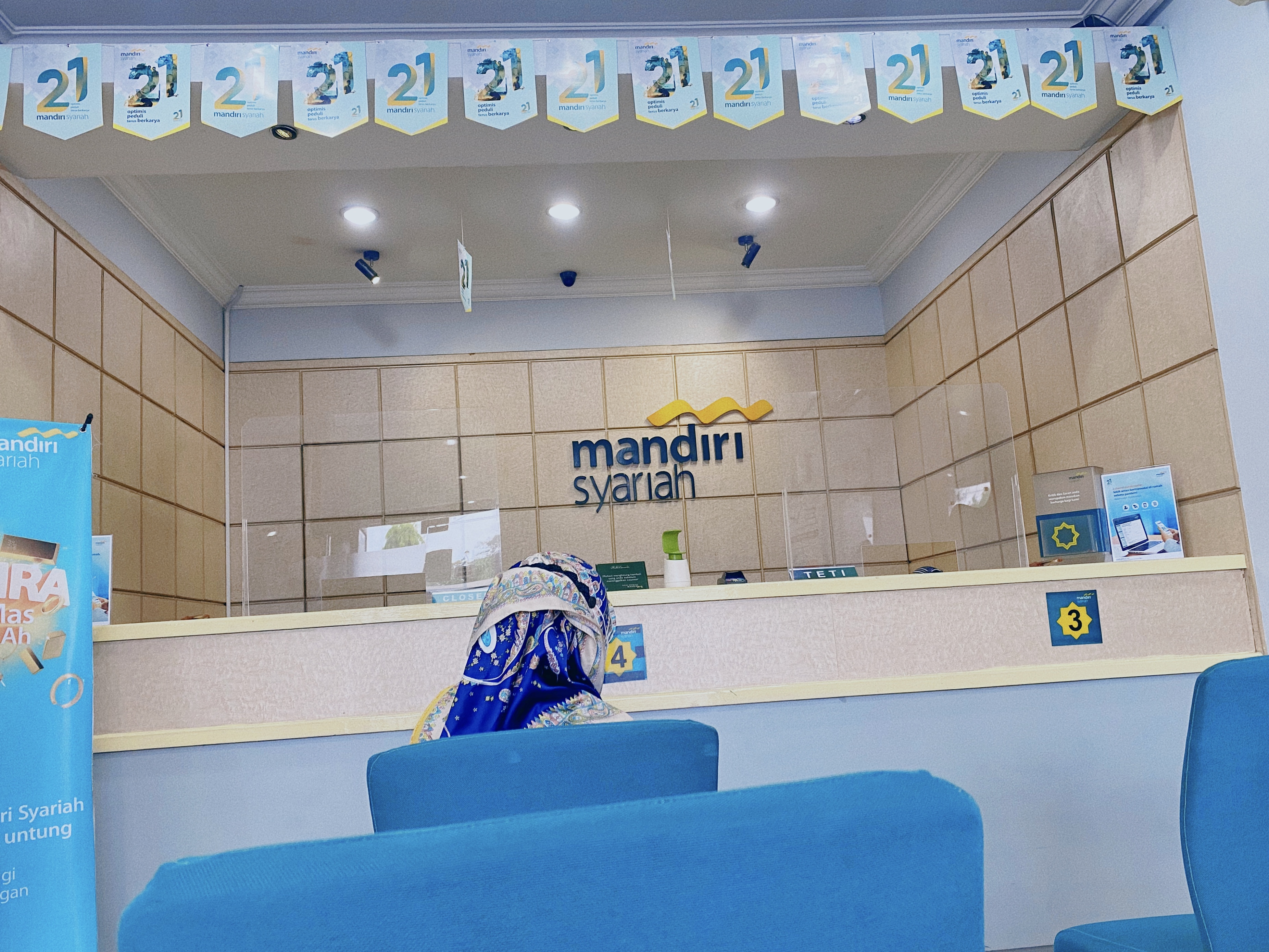 Ini bagian teller Bank Mandiri Syariah Cabang Binjai.
