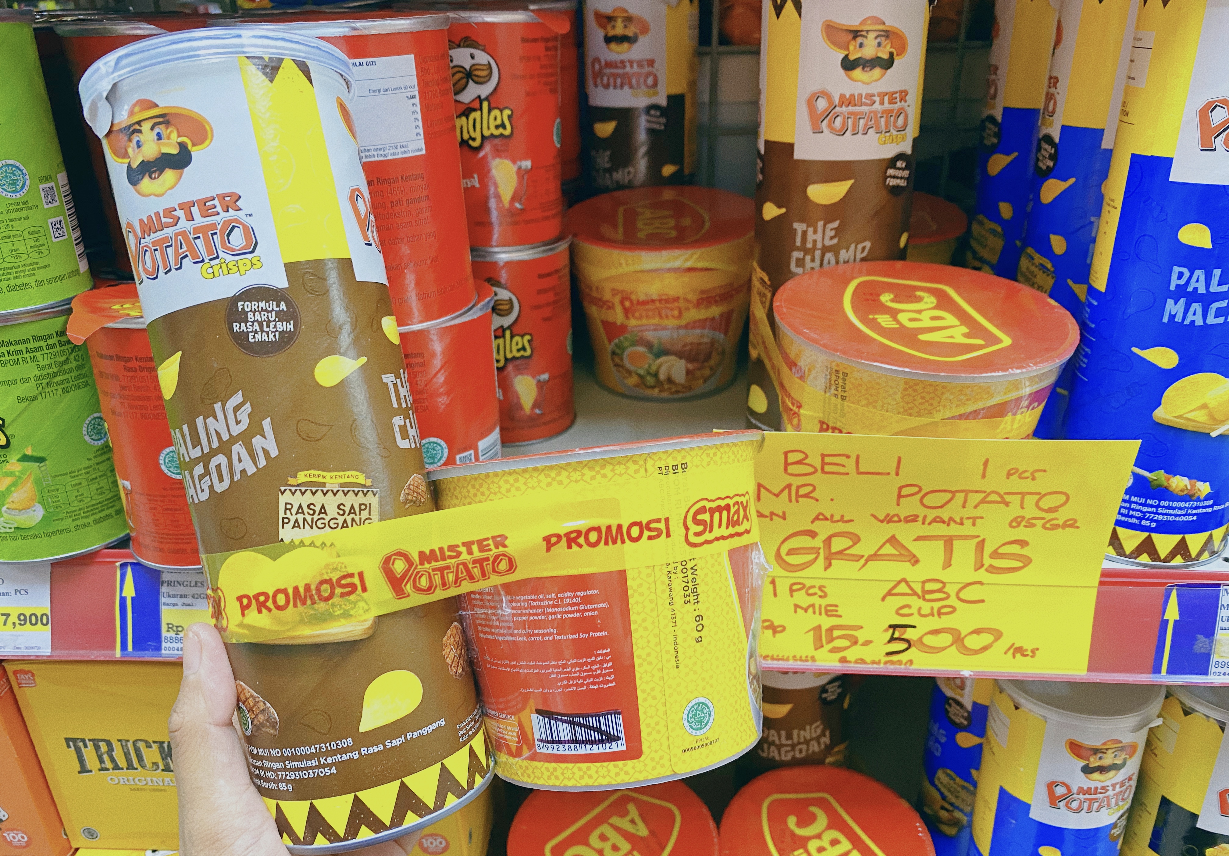 Satu jajanan ini pun tergolong murah, jadi saya harus membeli 3 bungkus jajanan ini untuk bisa mendapatkan gratis wadah penyimpanan makanan.