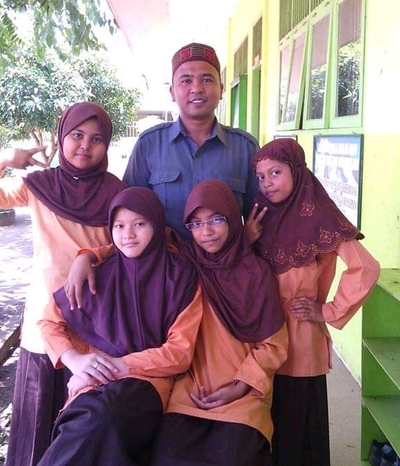 Dedy and his students in elementary school SD Negeri 19 Banda Sakti