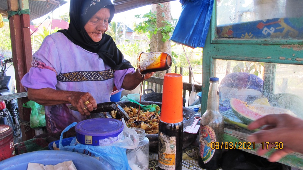 She is a fruit salad seller who has been alone since her husband passed away view years ago, she supports herself and her grandchildren by selling the fruit salad. Her monthly income is less than Rp. 500,000 IDR or equal to (5.5 SBD). She refuses to seek assistance from the government agent or her neighbor because she is a woman with honor. I decided to support this lady because we would like to provide her better and cleaner shelf in order to attract more customers to visit and buy her salad. In the progress of verification, I was assisted by @curiesea who has been in the social department and has keen eyes to identify the right beneficiary. Another reason to choose her is her place is quite familiar to the villager around and she is a respectful old lady. The Steemit/steem will be exposed to the community in a positive way of #promosteem and this is a good benefit for the platform as well