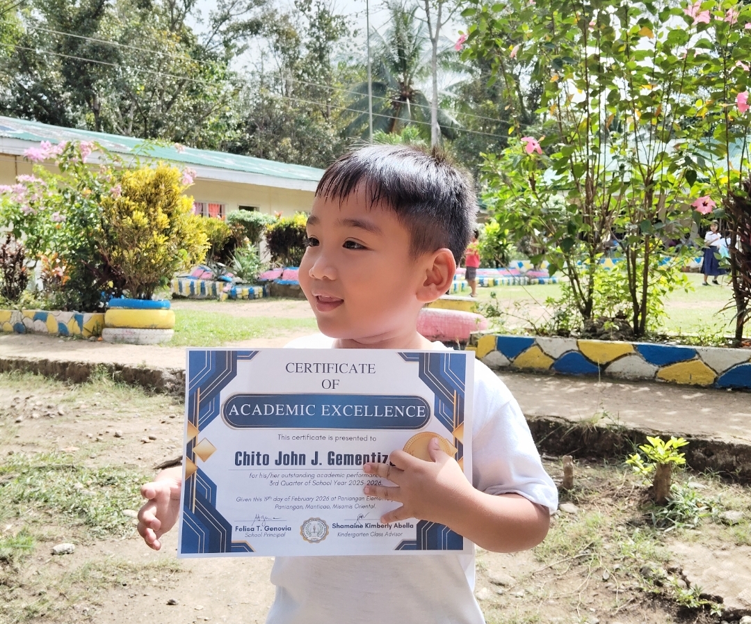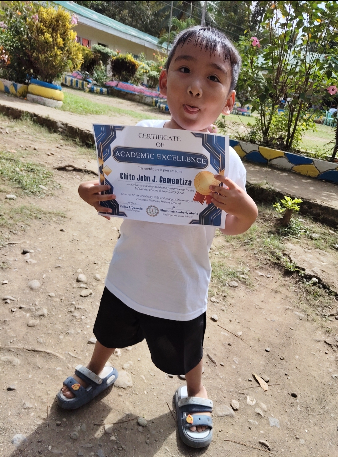 After the giving of certificates, he immediately went to me asking for snacks at the same time he gives to me his certificate and told me that he is honor again.