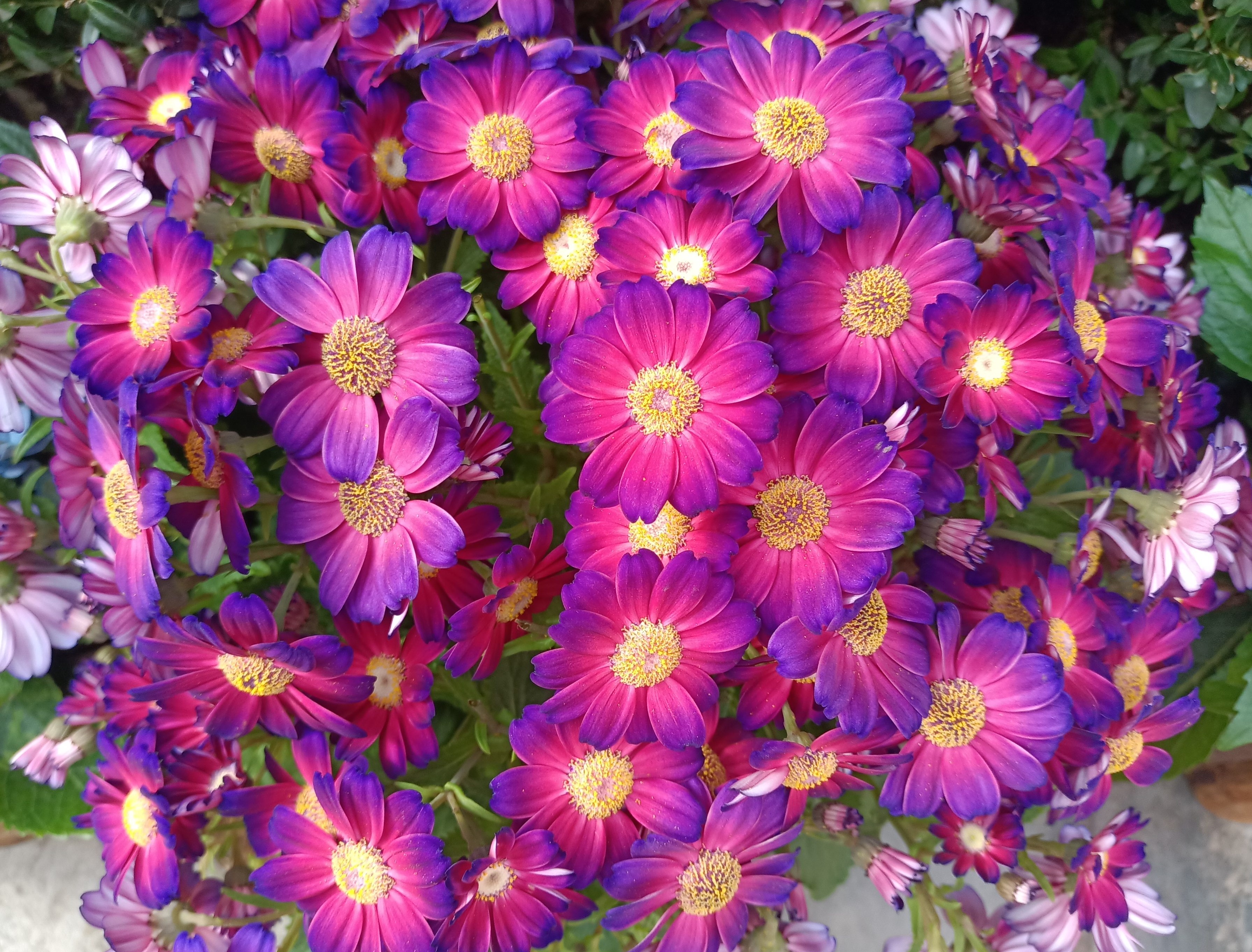 Cineraria is a genus of flowering plants in the sunflower family. It’s botanical name is Senecio cruentus. They are sometimes known as the 'bugs plant' because they are highly susceptible to infestation by insects, particularly aphids, whiteflies, and spider mites.