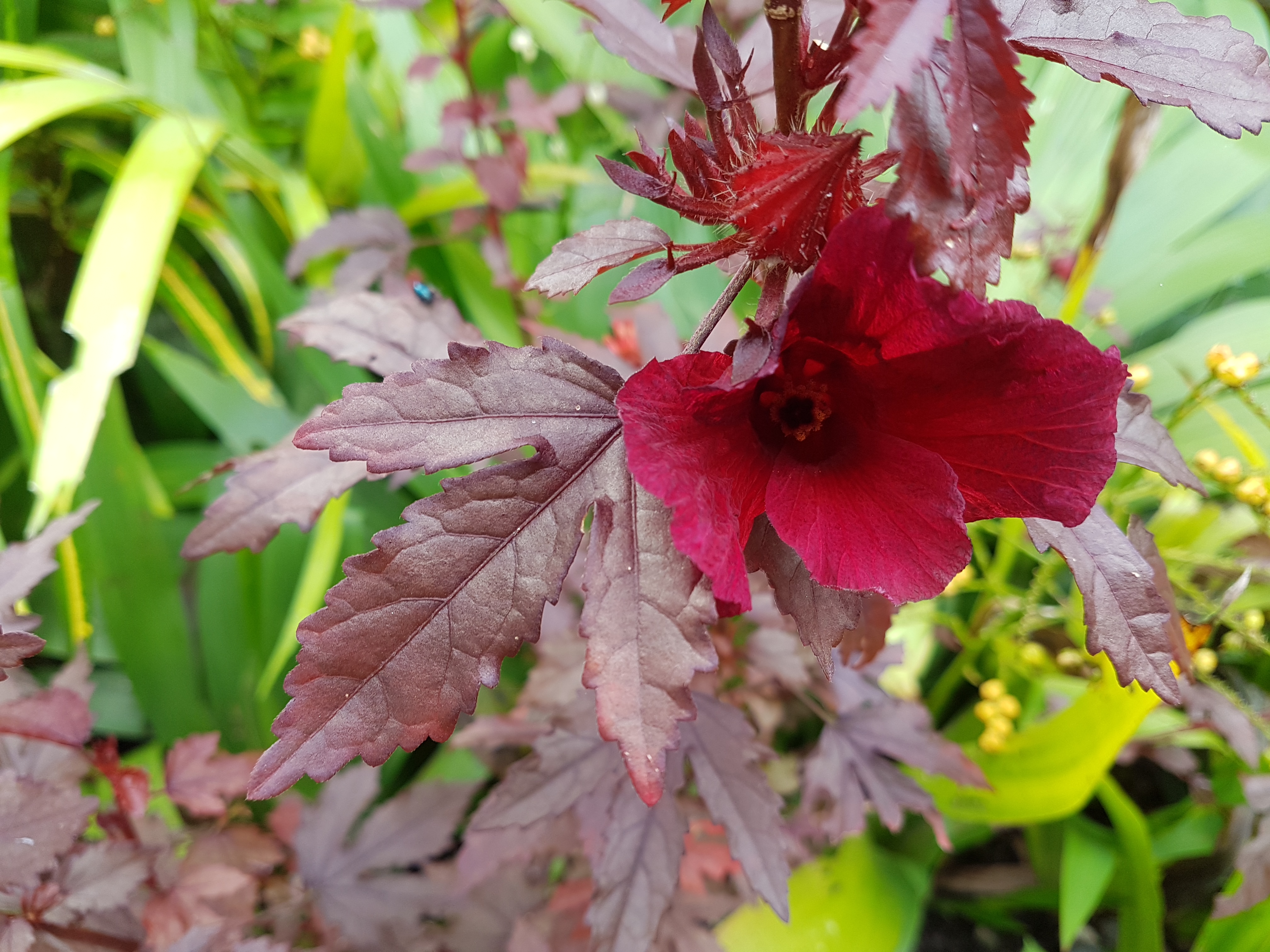 สวัสดีค่ะเพื่อนๆที่น่ารักทุกท่าน เช้านี้อากาศดีค่ะ มีเวลาเดินชมต้นไม้ดอกไม้ประดับ ก่อนลูก จะเรียนออนไลน์กันค่ะ ก็เดินตะเวนชมกวาดใบไม้ที่ร่วงลงพื่นหน้าบ้าน นำมาเป็นปุ๋ยใส่โคน ไม้ดอกไม้ประดับ เช่านี้ต้นไม้ดอกไม้ประดับบางชนิด ออกดอกเบ่งบ้านสวยงามทำ ให้บรรยากาศเช้านี้สดชื่นมากค่ะ มาเริ่มกับดอกไม้ดอกแรกที่อ้อมเก็บภาพกันเลยค่ะ ต้นเมเปิ้ล ดอกไม้สีแดง กำมะหยี่ ลักษณะอยู่คล้ายๆกับต้นกระเจี๊ยบผลและดอกคล้ายกันมากค่ะ