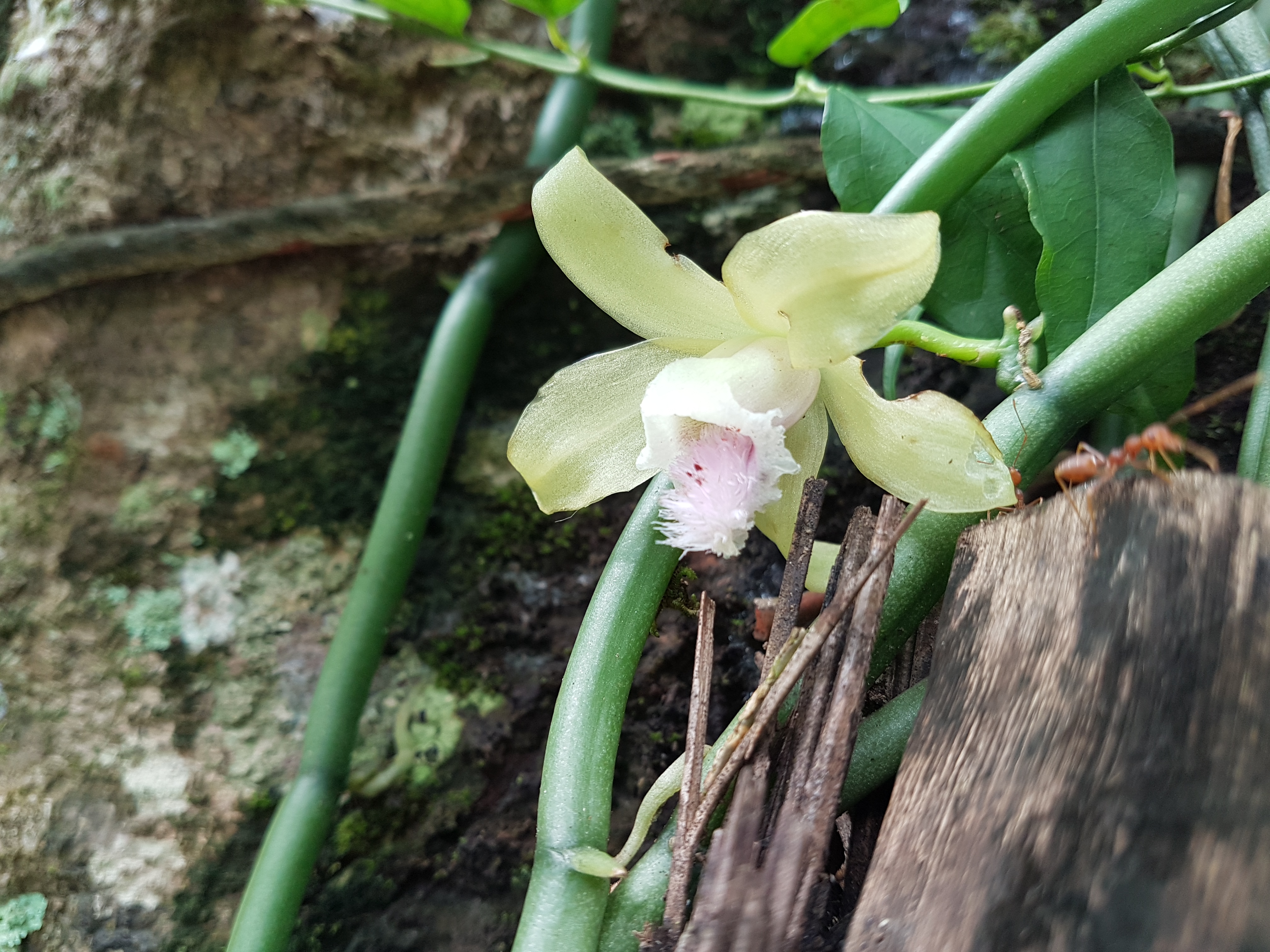 ภาพนี้เป็นภาพดอกกล้วยไม้ป่า เคยเขียนโพสไปแล้วค่ะก่อนหน้านี้ ซึ่งอ้อมหลงไหลกับกล้วยไม้ชนิดนี้มากเพราะมีแต่ก้านไม่มีใบและดอกออกตลอด ออกดอกให้ชมอยู่เรื่อยๆดอกมีความนุ่มนวลสวยงามน่าชื่นชมค่ะถึงแม้จะเป็นดอกที่มีขนาดเล็ก เอาจริงๆก็สวยเป็นดอกไม้ที่ไร้ใบ อ้อมนำมา ปลูกไว้ที่ใต้ท่อนสะท้อนหน้าบ้านให้มันได้ปีนไปต้นไม้ อย่างต้นสะท้อนขึ้นไปค่ะตอนนี้ก็แตกแขนง ออกดอก เทพจะทุกกิ่งก้านแล้วค่ะ